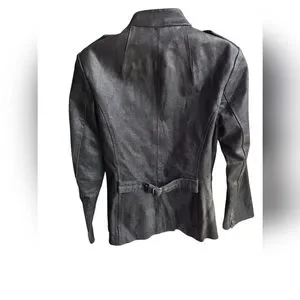 Vintage Twiggy Black Leather Button Up Womens Jacket Coat Size S