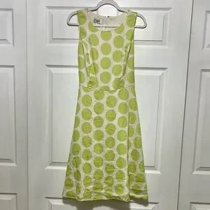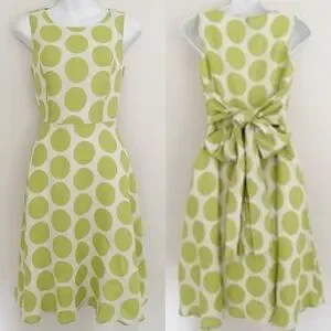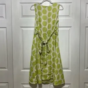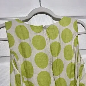 Talbots Vintage Stylish Green Polka Dot Linen Sun Dress Size 10