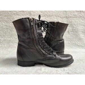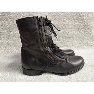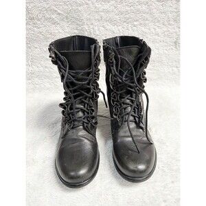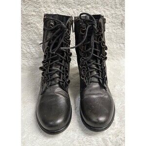 Betsey Johnson women distressed black Leather Steampunk Combat boots size 7