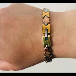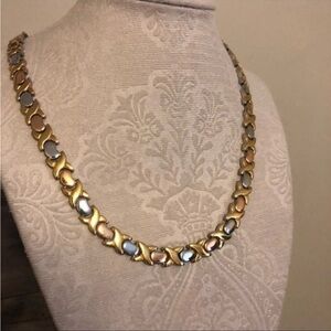 3 tone (gold, silver and rose) necklace and bracelet set.