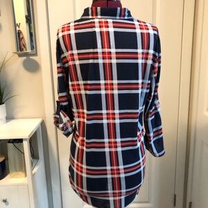 Stylish plaid top with bold colors. Perfect for casual wear.