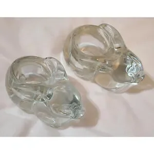 2pk Glass Bunny Rabbit Votive Candle Holder Paperweight Animals Clear