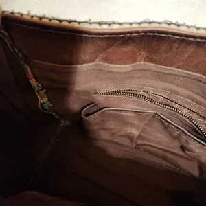 Embrace the spirit of the Southwest with the STS Ranchwear Brown Tote, featuring a striking geometric pattern in warm earth tones. This medium-sized tote combines style and practicality with its structured shape and durable brown leather handles. Perfect for adding a touch of desert-inspired elegance to your everyday ensemble. 11.5"wide, 10"tall, 5.5" depth. good condition