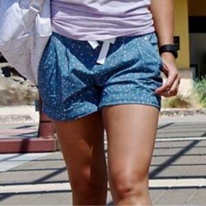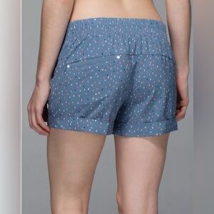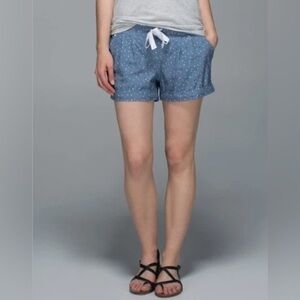 Experience comfort and style with these high-waisted shorts from Lululemon Athletica, featuring a breathable fabric in a chic blue and white color scheme. Perfect for warm weather activities, these shorts offer a relaxed fit and a sporty look.