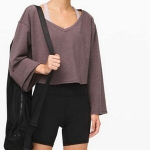 Lululemon Show Your Depth Long Sleeve Heathered Antique Bark Cropped Sweatshirt