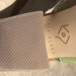 These stylish mules from Katy Perry Collections feature a vibrant green leather upper adorned with intricate floral cutouts and red accents. The slip-on design and medium heel height offer both comfort and elegance, making them perfect for a summer outing. The natural leather footbed provides a neutral base, enhancing the overall tropical-inspired aesthetic.