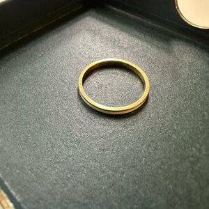 This Mejuri gold ring features a sleek, minimalist design with a polished finish that beautifully reflects light. Crafted in a classic band style, it offers a timeless elegance perfect for any occasion. Its thin, uniform width makes it a versatile piece that complements any jewelry collection.