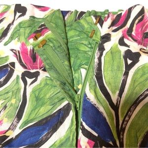 Beautiful and bold Aje Eden Paperbag Shorts featuring a hand-painted floral print in green, pink, blue, and black. Crafted from 100% linen, these shorts have a structured silhouette with cuffed hems and a flattering paperbag waist. A standout summer piece from the cult-favorite Australian designer brand.