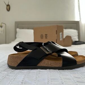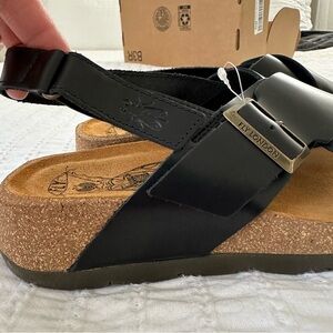 NWOT Fly London Black Leather Sandals with Buckle 39