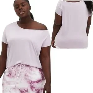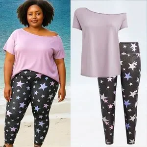 Torrid Active Set: Performance Core Leggings & Purple Off Shoulder Wicking Tee 2