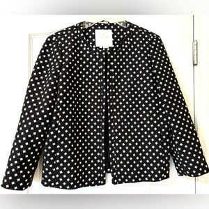 Kate Spade Medium Black Diamond Embroidered Open Front Blazer Jacket size 8