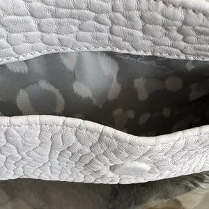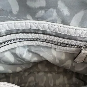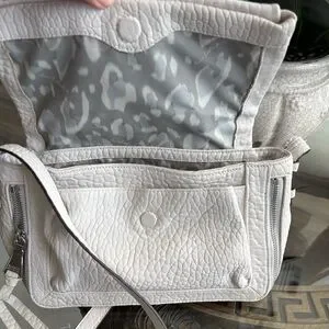 🤍🤍AIMEE KESTENBERG WHITE FLAP PEBBLED LEATHER BAG WITH AIMEE KESTENBERG NAME EMBOSSED IN LEATHER ON FRONT! UNDER FLAP HAS A SLIP POCKET FOR CELL PHONE ETC! IT HAS A ZIP AROUND FOR EXPANSION! ZIPPER PULL HAS A LEATHER PULL! FULL BACK SLIP POCKET WITH A MAGNETIC SNAP CLOSURE! ADJUSTABLE CROSSBODY STRAP! SILVER HARDWARE! INTERIOR HAS A GREY & WHITE SIGNATURE LINING WITH ONE ZIP POCKET AND ONE SLIP POCKET! USED ONCE! EXCELLENT CONDITION!🤍🤍