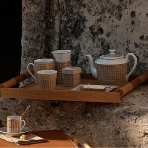 Elegant Hermes box with intricate gold and white design. Perfect for adding a touch of luxury to any space.