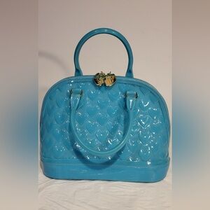 BETSY JOHNSON Teal quilted heart jelly satchel purse