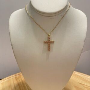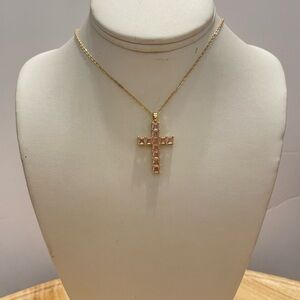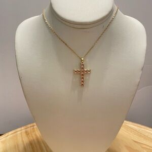 Elegant gold cross pendant necklace, perfect for any occasion. The gold finish adds a touch of luxury to your outfit.