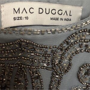 NWT |Mac Duggal A5434 Silver Short Sleeve Beaded A-line Tea Length Dress Size 10