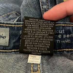 Mossimo BootCut Jeans. Slight stretch to them. 99% Cotton and 1% Spandex. Great used condition. There seam on the bottom of the leg hem coming loose in a couple spots. Please see pics. Light signs of wear.