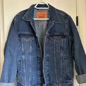 Timeless Levi's denim jacket. Features button closure and iconic chest pockets.
