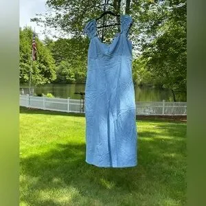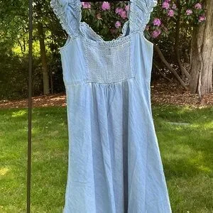 Gap Denim Maxi Flowing Sweetheart Neck Ruffled Wide Straps Light Washed Dress