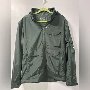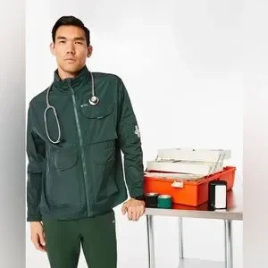 FIGS Men’s On-Shift Extremes Jacket Lightweight Hooded Windbreaker Green Medium
