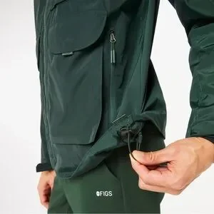 FIGS Men’s On-Shift Extremes Jacket Lightweight Hooded Water Repellent Windbreaker British Racing Green Size Medium