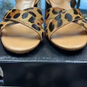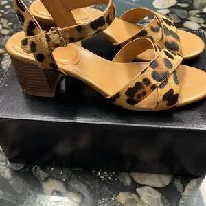 JCREW LEOPARD CALFHAIR LOWBLOCK HEEL SANDAL, size 7 1/2. EUC. Scoot on toes, shown in pictures