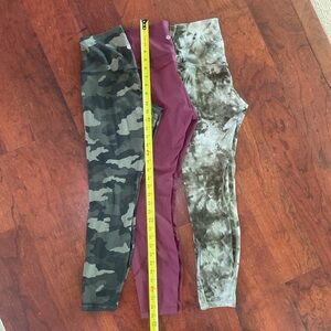 Bundle of 3 LULULEMON Size 6 Leggings Maroon, Green Camo and Green Tie Dye