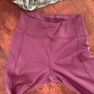 Well loved Lululemon workout leggings. The tie-dye pair has pockets.