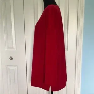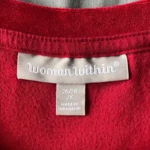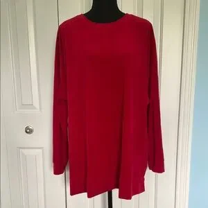 Vibrant great Condition Woman Within 2X 26/28 Red Velour Long Sleeve Crewneck Top Soft and comfortable. Perfect for any occasion about 30 inches across chest laying flat from pit to pit about 17 1/2 inches from pit to bottom hem of shirt about 16 inches from pit to wrist Smoke free home I accept reasonable offers
