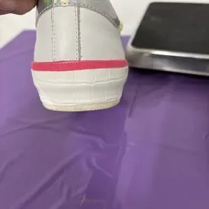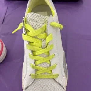 The Dolce Vita Women's Zina Sneakers in Neon Multi Leather are trendy low-top athletic shoes designed for women. These sneakers feature a lace-up closure and are crafted with white leather uppers, giving them a stylish and versatile look. With a vibrant neon theme, these sneakers add a pop of color to any outfit. The size available is US 10, making them a comfortable and fashionable choice for everyday wear.