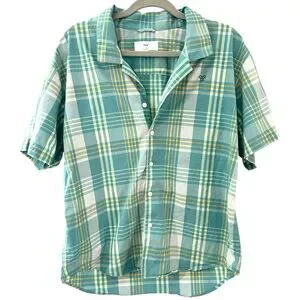 Aritzia TNA Plaid Button Down Shirt Teal Size S