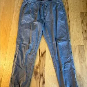 Experience ultimate comfort with these GAP gray sweatpants, designed with a relaxed fit and an elastic waistband for easy wear. Crafted from lightweight material, they are perfect for casual outings or lounging at home. The subtle sheen adds a touch of style to these versatile joggers.