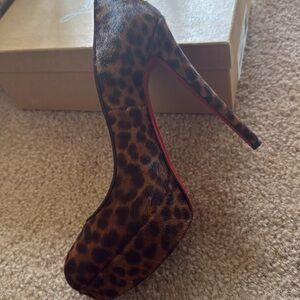 Never afraid to be over the top, Christian Louboutin has created these stunning Leopard Print Pony Hair Daffodile 160 for the fashionista that loves to stand out. The leopard print on this sky-high 160mm pump is mesmerizing and sassy. Now you can turn heads in these lusted after heels!!! Comes with box and dust bag.