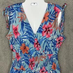 Lascana VS Womens Jumpsuit Faux Wrap Floral sz 10 Wide Leg Tropical bloomcore