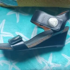 Step into comfort with Taos Footwear's black sandals, designed with a contoured footbed and wide straps for a secure fit. These sandals boast a modern aesthetic and sturdy construction, ideal for everyday wear.