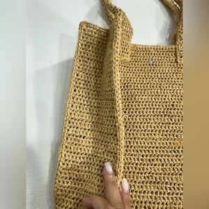 This stylish tan raffia tote bag is perfect for any occasion. Its elegant design and spacious interior make it a must-have accessory.
