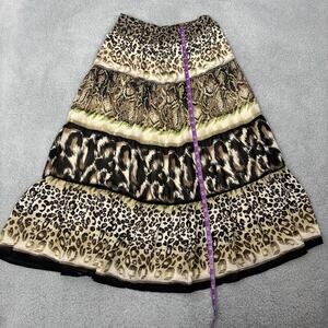 Item Detail: JM Womens Midi Tiered Skirt Animal Print Sequins sz 8P Whimsigoth grunge boho