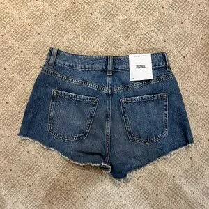 NWT! Garage Denim Amelia Blue Festival Shorts. Five-pocket styling. Zip-fly with button closure. Raw hem. Fading and distressing throughout. Never Been Worn. Excellent Condition. 75% Cotton, 25% Organic Cotton.