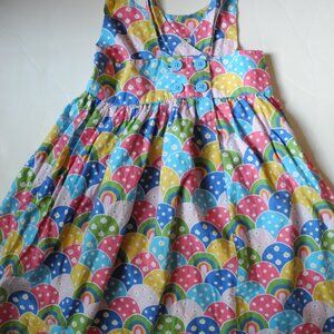 Super cute rainbow patchwork dress from Frugi UK. All organic woven cotton with a crossback style with button closures. Size 6 7 years. VGUC no stains or rips or fade. Mild washwear.