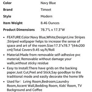 NWT Navy & white Peel & Stick Wallpaper striped - 17.7inch x 78.7inch