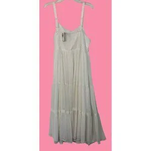 Torrid White Gold Chiffon Tiered Midi Dress Size 2X Adj Straps Smock NWT RA10137