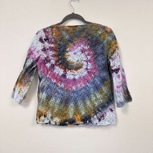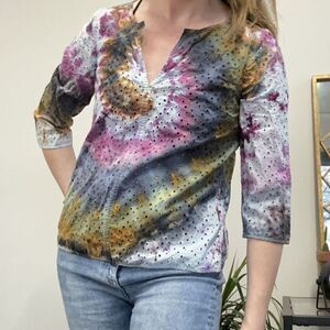 Talbots Eyelet Rainbow Tie Dye 100% Cotton Blouse