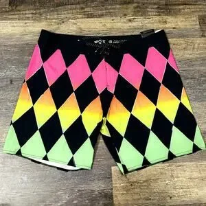 Billabong Men's Multicolor Diamond Tie Waist Boardshort Swim Trunks Size 40 NWT