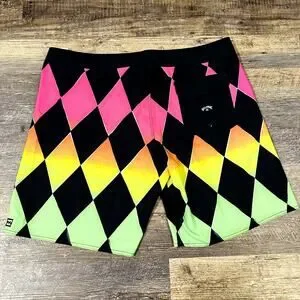 Billabong Sundays Men's Multicolor Diamond Tie Waist Boardshort Swim Trunks Size 40 NWT