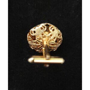 Elegant men’s accessory with intricate filigree detailing and yellow rhinestones, stored in its original box for added charm and preservation. Approximately 0.75 inches