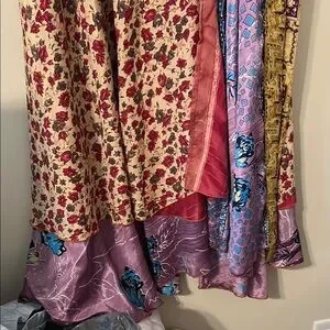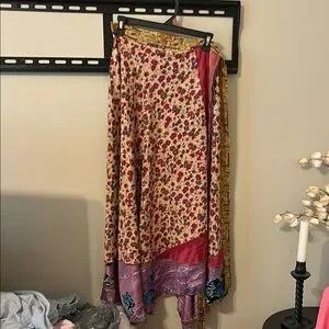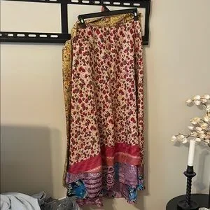 This vibrant floral Art Silk long wrap skirt features a mix of colors for a unique look. Perfect for adding a pop of color to your wardrobe.