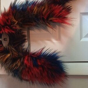 Holiday Gift **** Vibrant faux fur collard with matching sleeves cuff. Perfect for adding a pop of color to any coat, or jacket. You can also outline the top of your boots with the Cuffs, the colors are fun and very beautiful, blue, red, and touches of yellow, New.