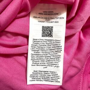 New Vero Moda Women's V Neck Ruffle Frill Top Hot Pink Size Small