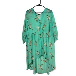 Torrid Women’s Green Floral V-Neck High Low Sheer Sun Top