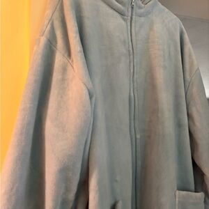 Soft light blue plush robe with a zipper front. Includes two convenient front pockets.